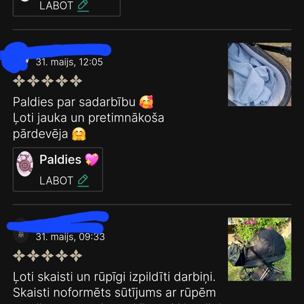 Atsauksmes no maniem mīļajiem klientiem.  Tie kuri pie manis sūta preces sev,bērniem,dāvanām zina ,ka katrs pasūtījums izpildīts ar mīlestību, rūpēm,un sirsnību. Klāt vienmēr pievienojot labus vārdus arī klientiem.  Paldies, katram kurš šo gadu laikā pie manis iegādājies preces un devis man prieku iepriecināt Jūs.   Vairāk atsauksmes vari palasīt instagram profilā pogapodzinalv ''highlight''sadaļās atsauksmes..